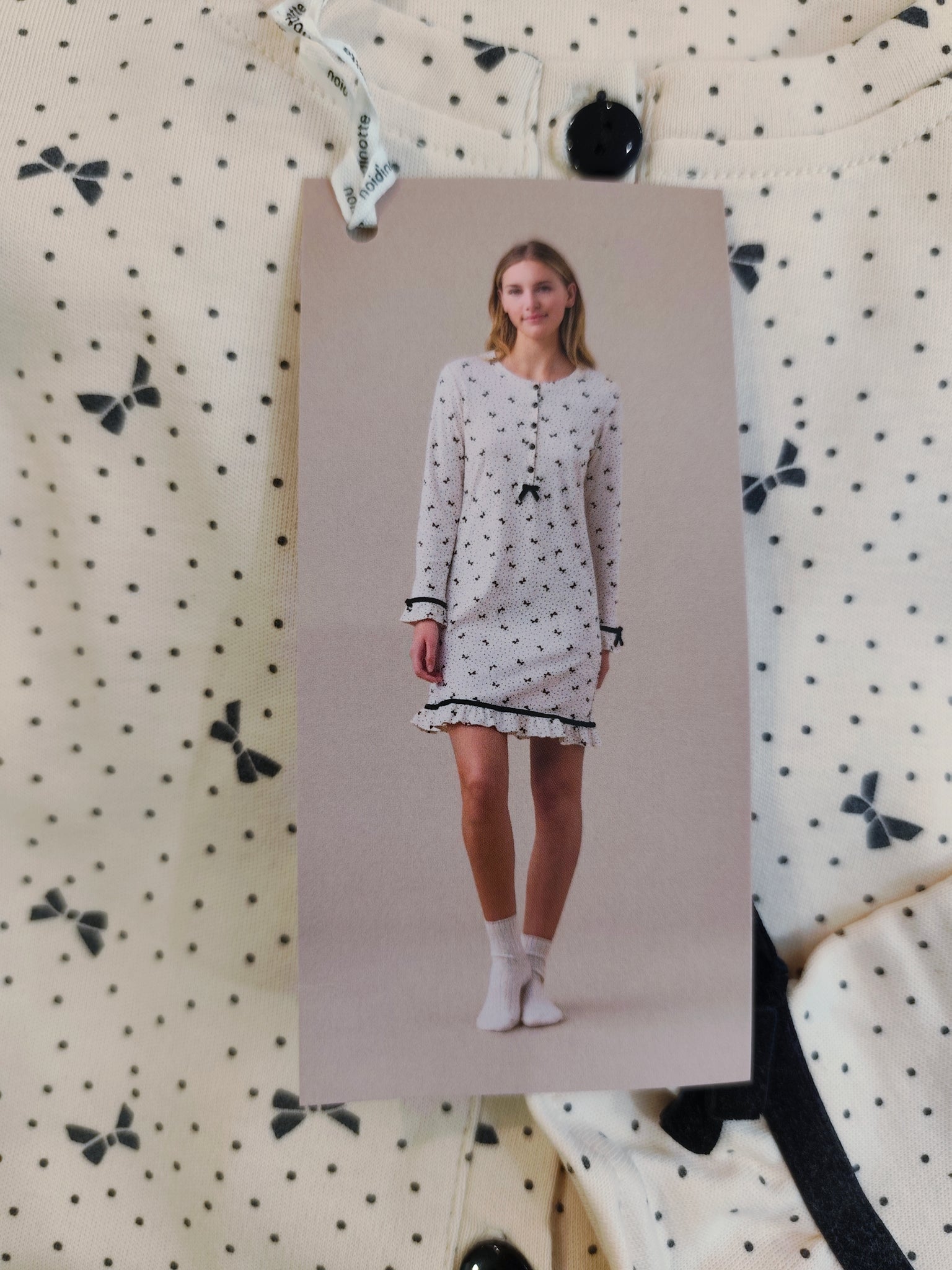 Camicia da notte in caldo cotone con apertura a serafino e inserti di velluto nero