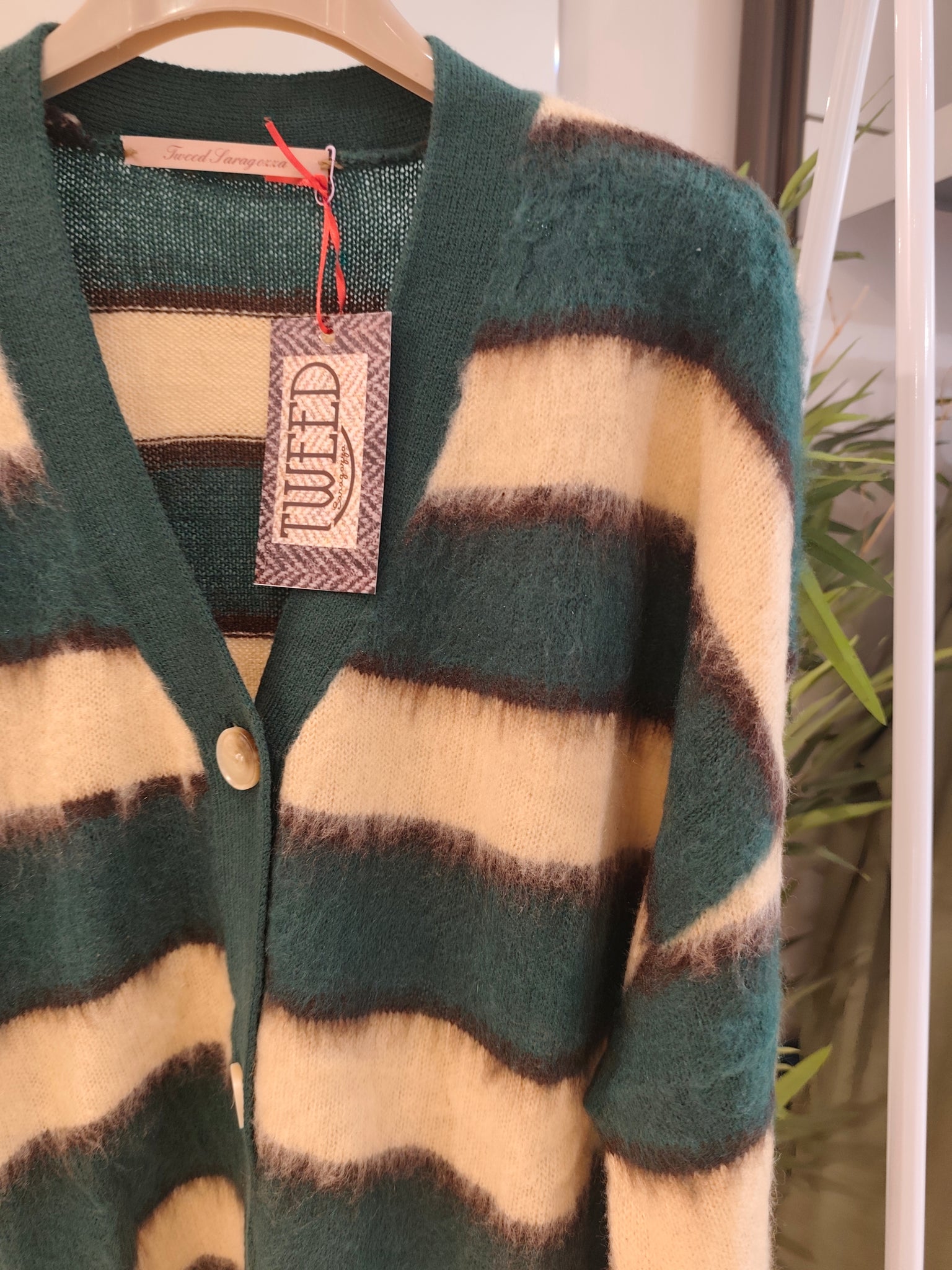 Cardigan a righe taglio scatoletta in soffice tessuto simil peluche