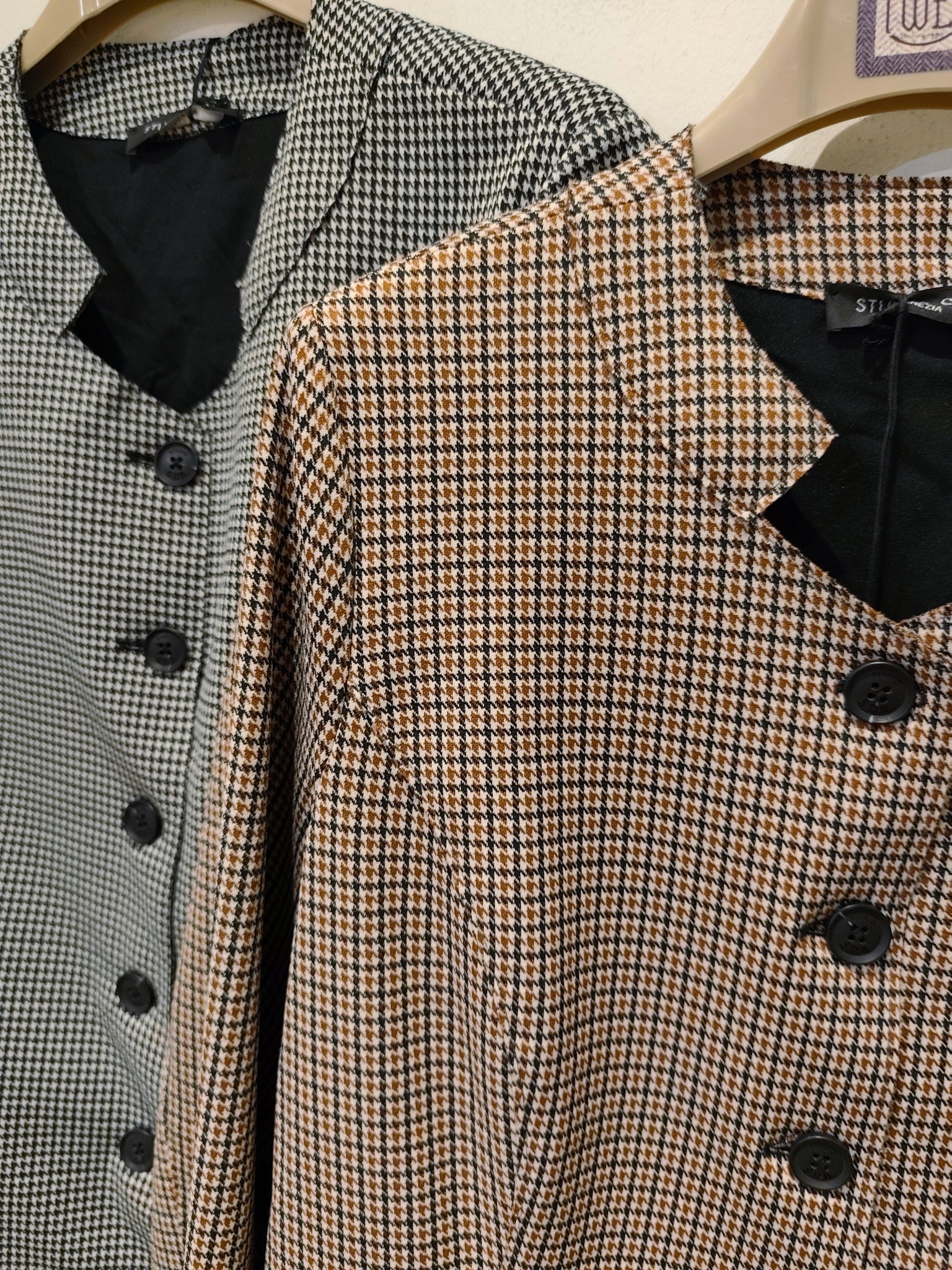 Giacca morbida in principe di Galles con bottoni e collo alla coreana