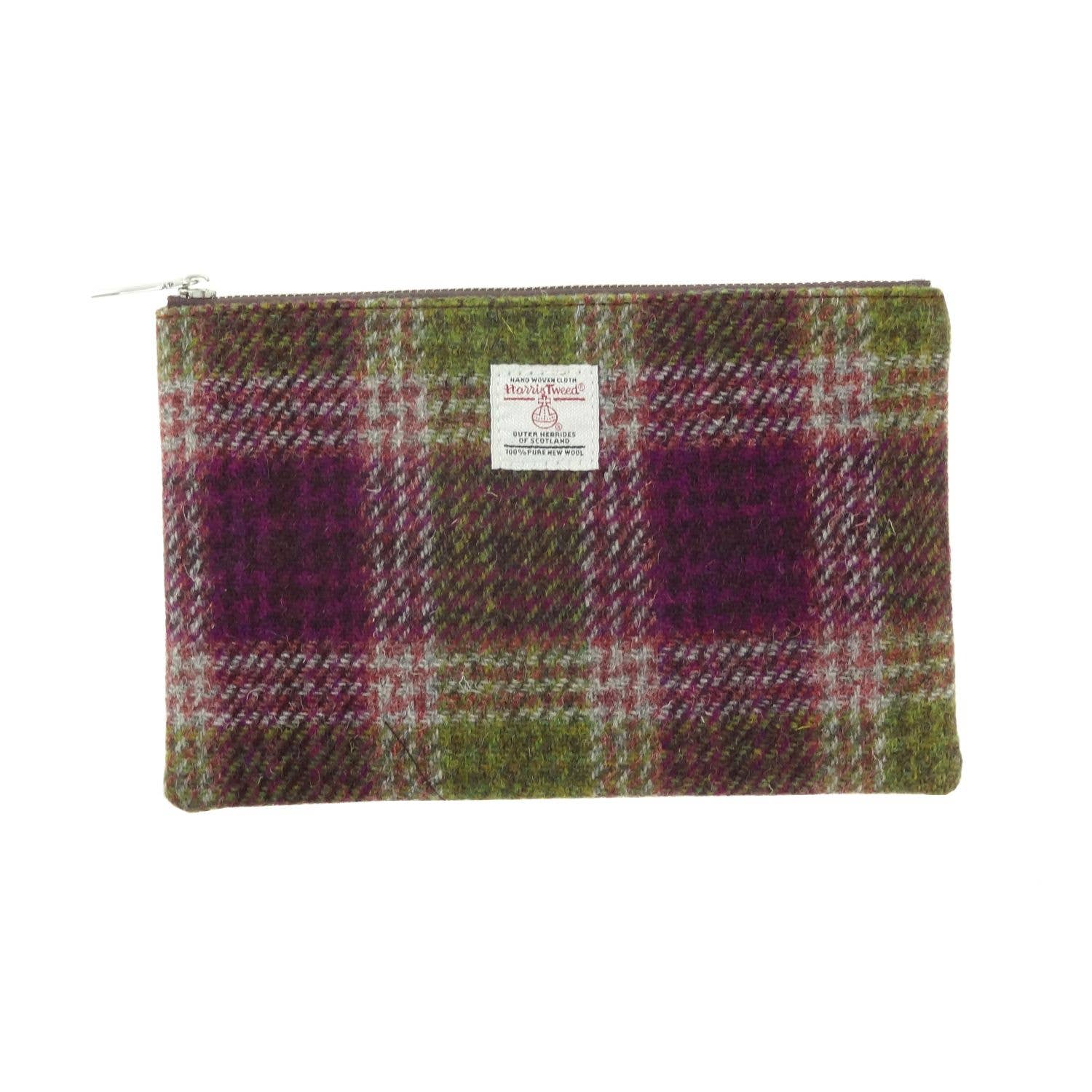 Pochette media con zip e tasca media in 100% lana Harris Tweed