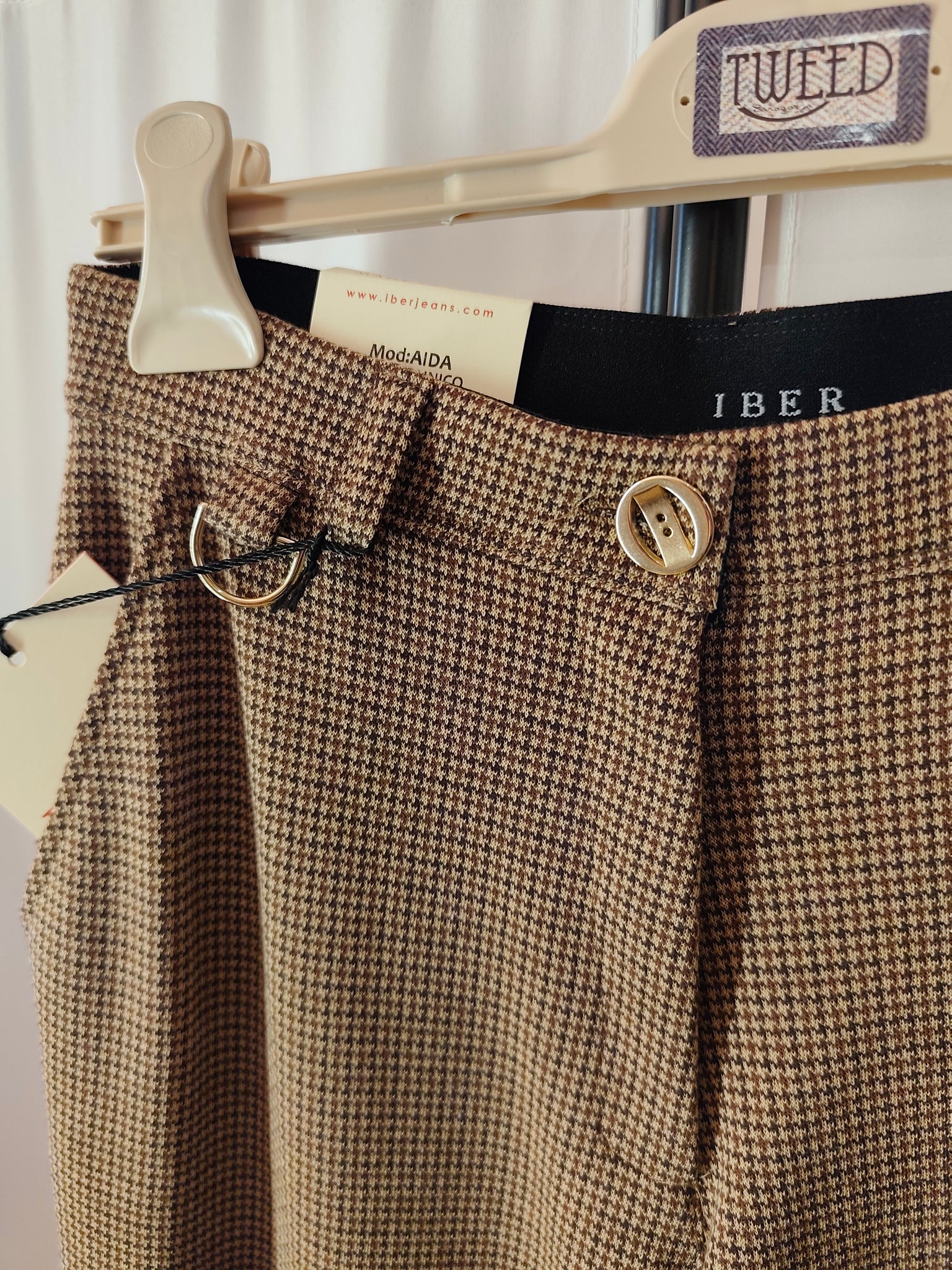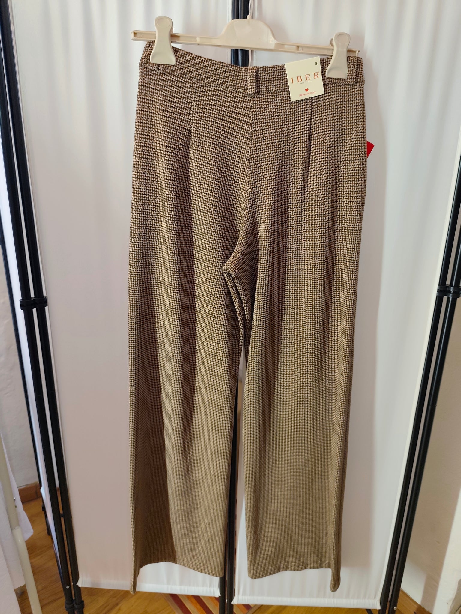 Pantalone di morbida maglina pied de poule in misto viscosa con elastico in vita e zip