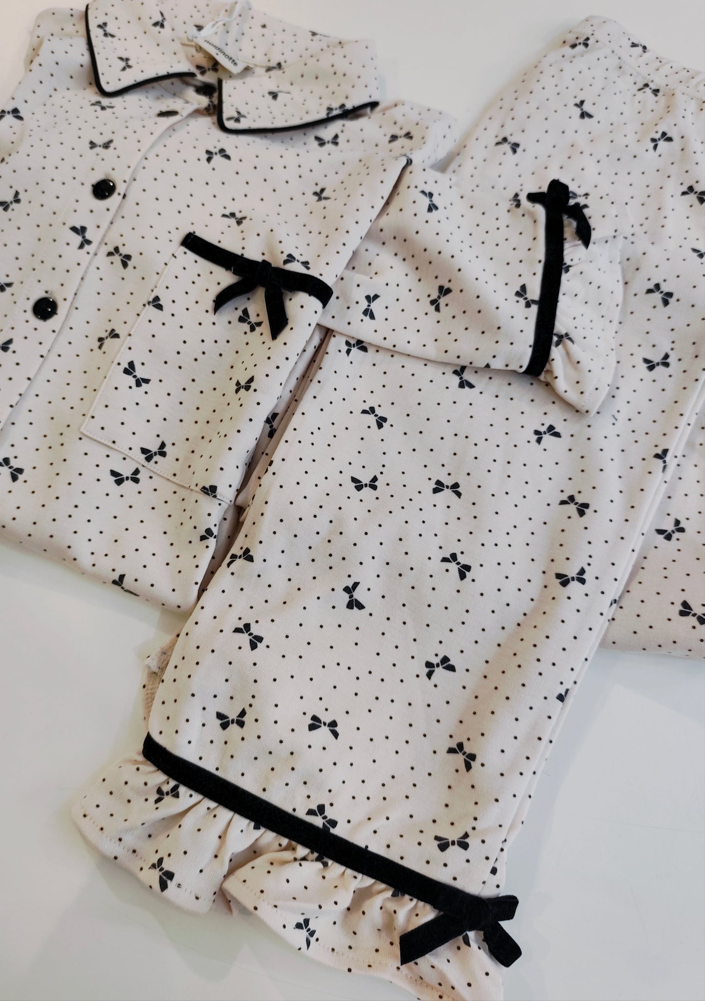 Pigiama in caldo cotone con colletto, apertura a uomo e profili in velluto nero