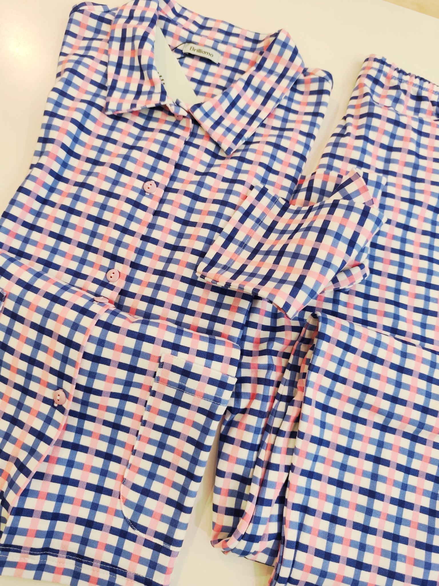 Pigiama in caldo cotone aperto con colletto e pantalone con elastico